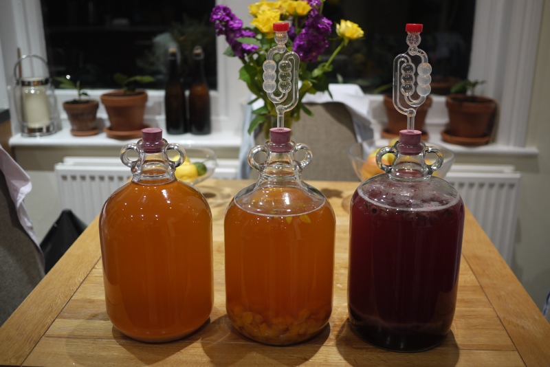 On day 8, I split the beer into three demijohns. The first went into the fridge for 24 hours, and the other two received, respectively, two punnets (640g) of very out of season lightly roasted apricots (thanks, South Africa!) and two punnets (600g) of slightly out of season blueberries simmered and ensauced in a little water. I cracked a bottle of the control about 10 days after bottling and it was undercarbonated and sweet, so I think this might be another Belgian yeast that takes a few months to get to work. Yawn. Check back next year for a side-by-side comparison.